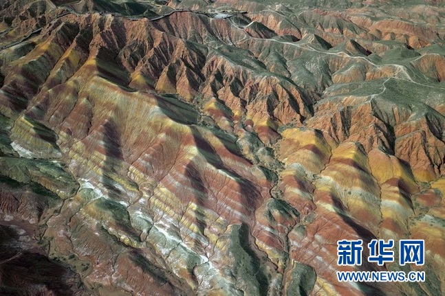 這是3月24日在張掖七彩丹霞景區(qū)拍攝的彩色丘陵景觀(無人機照片)。新華社記者 范培珅 攝