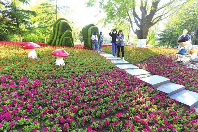 4月29日,游人們在濟(jì)南植物園賞花觀景。“五一”假期將至,植物園內(nèi)紫藤、流蘇、繡球等花卉競相綻放。園區(qū)還在皂角樹下、葫蘆廣場、大茶壺廣場等景點(diǎn)布置了非洲萬壽菊、金盞菊、美女櫻、矮牽牛、一串紅等時令花卉6.3萬余株,營造和諧自然的濃郁節(jié)日氛圍,游人們置身花香四溢的靚麗環(huán)境中,放松身心,休閑游玩,好不愜意。