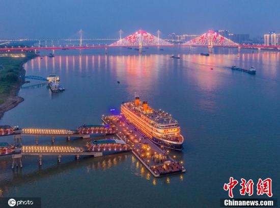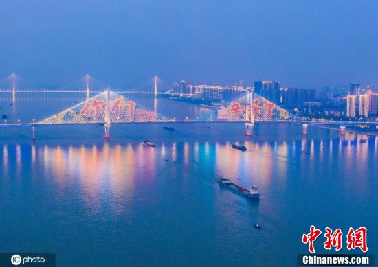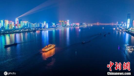 武漢長江兩岸燈光秀點亮致敬勞動者。