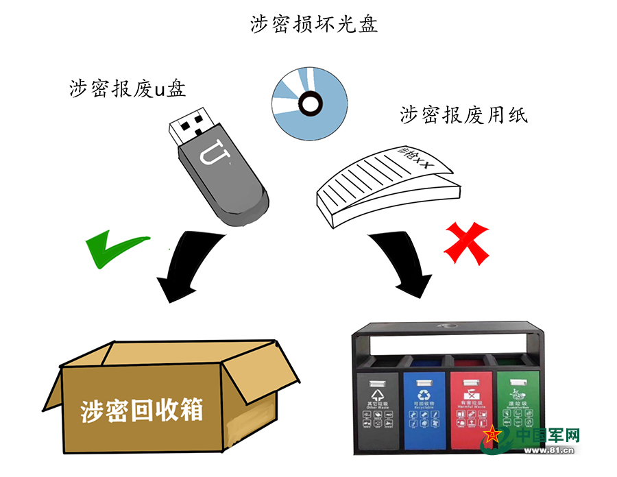 針對涉密物品管理,他們建立了涉密回收箱制度,規(guī)定日常工作中產生的廢紙、損壞的硬盤U盤、用過的光盤等都要統(tǒng)一回收處理。