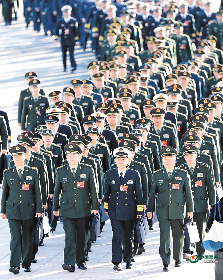 3月12日,十三屆全國(guó)人大二次會(huì)議在人民大會(huì)堂舉行第三次全體會(huì)議。圖為軍隊(duì)人大代表列隊(duì)走向人民大會(huì)堂。