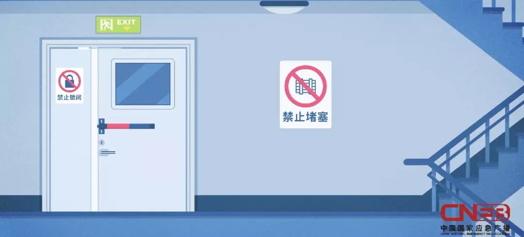 進(jìn)入商場、醫(yī)院、酒店等人員密集場所時(shí),應(yīng)該先觀察逃生示意圖,了解安全出口和消防通道路線,物業(yè)公司也應(yīng)定期清除樓道堆積物,加強(qiáng)消防通道管理。