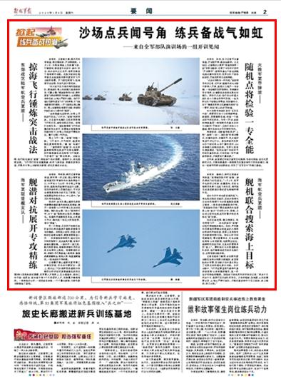 元旦剛過(guò),針對(duì)新年度訓(xùn)練任務(wù)特點(diǎn)和新大綱規(guī)定,全軍部隊(duì)演訓(xùn)場(chǎng)的練兵備戰(zhàn)熱情高昂。請(qǐng)關(guān)注今日出版的《解放軍報(bào)》的詳細(xì)報(bào)道——