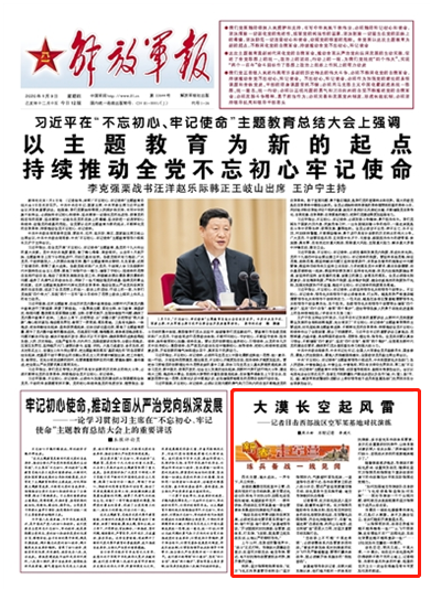 夜色茫茫,朔風(fēng)又起。千里大漠,一片黃沙。站在這片戰(zhàn)機轟鳴聲仿佛依然不絕于耳的土地上,記者相信,當(dāng)新年春風(fēng)吹來的時候,祖國的空天衛(wèi)士一定會在浩瀚蒼穹書寫更加壯美的航跡。