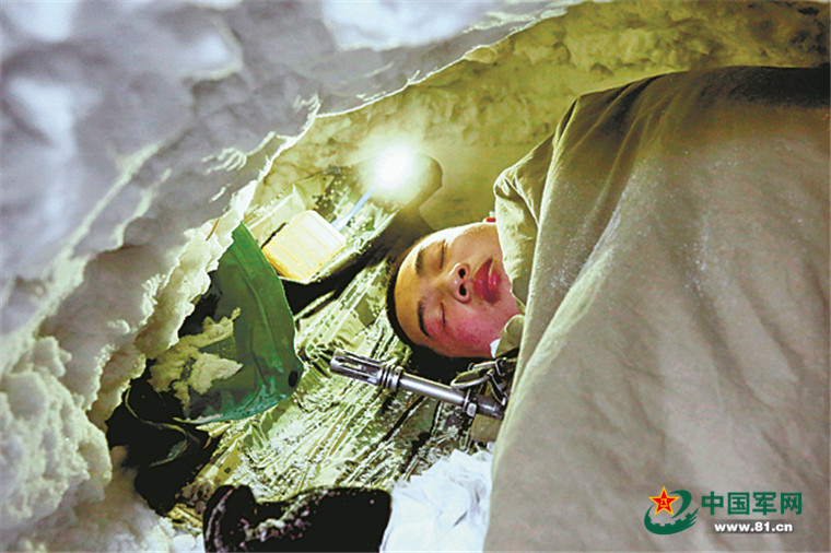 冬季野外宿營,戰(zhàn)士們在雪窩里睡得香甜。