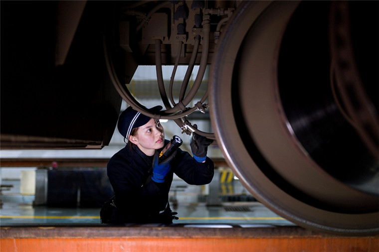 她們的作業(yè)分為有電作業(yè)和無電作業(yè)兩種狀態(tài)。有電作業(yè)主要是對(duì)高鐵車載設(shè)備進(jìn)行試驗(yàn),檢查機(jī)柜內(nèi)設(shè)備顯示燈是否正常,機(jī)柜是否有異物、異味等;無電作業(yè)主要是對(duì)高鐵動(dòng)車組車底的速度傳感器、應(yīng)答器、軌道信息接收天線線圈進(jìn)行防松脫檢查等。