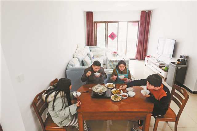 由于楊森老家房屋已經(jīng)垮塌,成了無房戶,按政策可以享受貧困戶宅基地復(fù)墾政策,于是,他在李家溪易地扶貧搬遷點申請到了一套125平方米的新房子,并于去年底入住,在這里過脫貧后的第一個大年。
