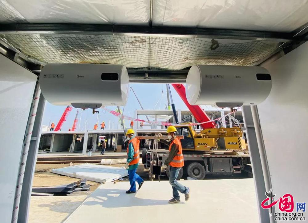 二號住院樓板房搭設(shè)完成85%,內(nèi)部機電設(shè)備安裝工序全面展開