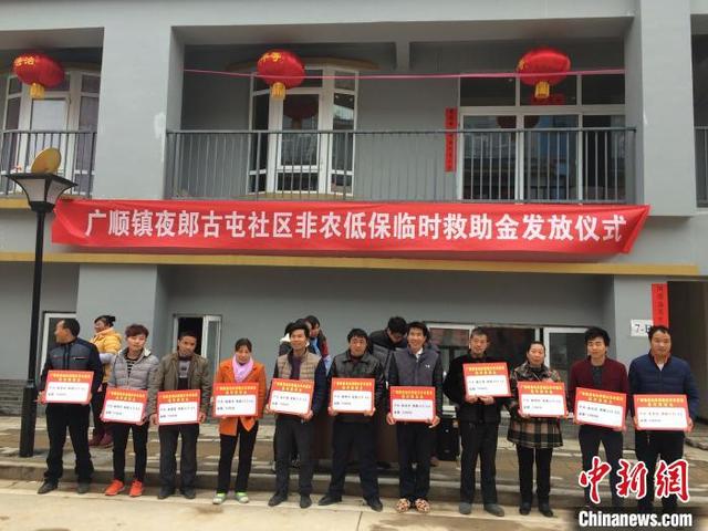 資料圖:貴州省長順縣廣順鎮(zhèn)易地扶貧搬遷貧困戶一次性臨時救助金發(fā)放儀式?!¢L順縣民政局供圖