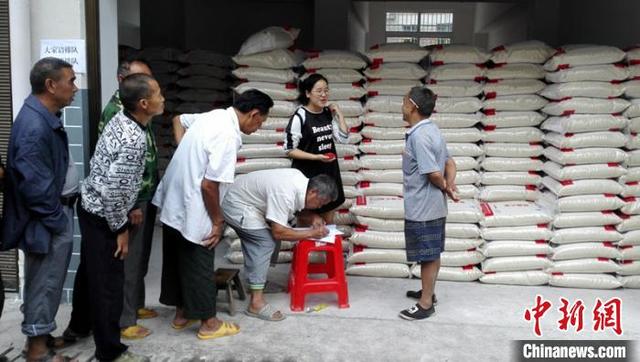 資料圖:貴州省天柱縣民政局給困難民眾發(fā)放救助糧。 天柱縣民政局供圖