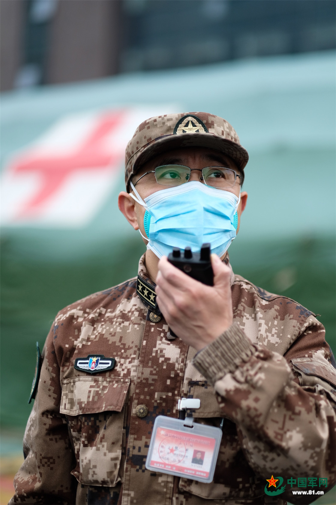 “60名患者馬上進(jìn)醫(yī)院,請(qǐng)接診中心做好準(zhǔn)備。”對(duì)講機(jī)里傳來命令。張軍帶著隊(duì)伍一字排開站在醫(yī)院患者通道,依次點(diǎn)名后一字一頓地大聲說:“養(yǎng)兵千日,用兵一時(shí)。祖國(guó)和人民考驗(yàn)我們的時(shí)候到了,大家跟緊我,準(zhǔn)備快速接診。”