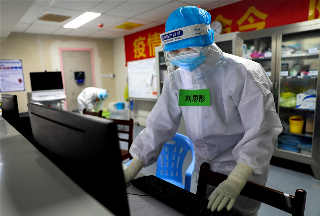 凌晨3點(diǎn)59分,劉思彤進(jìn)入病房開始工作。朱霄雄 攝