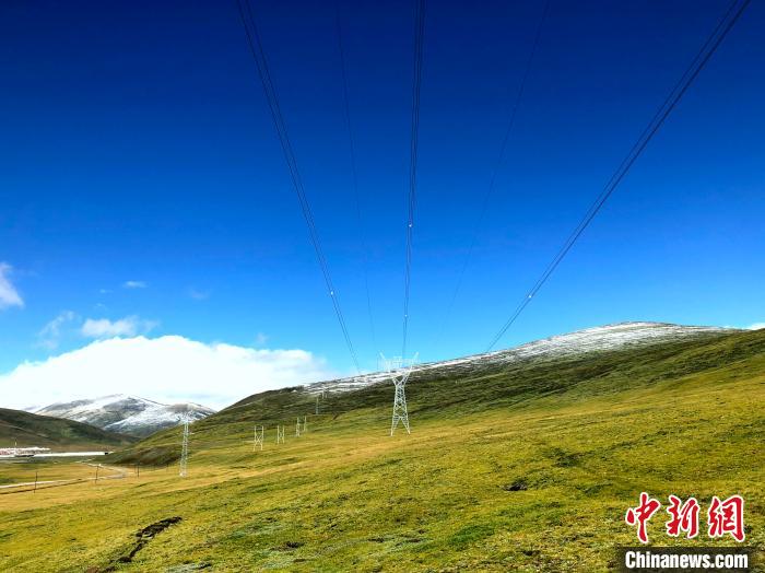 圖為世界海拔最高的330千伏輸變電工程玉樹聯(lián)網(wǎng)工程輸電線路穿越高山草原。 惠文莉 攝