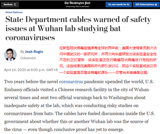 “美國正在調(diào)查新冠病毒是否與武漢實(shí)驗(yàn)室有關(guān)。”