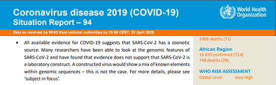 “當(dāng)前媒體和社交平臺上流傳著一些有關(guān)新冠病毒起源的謬論和陰謀論。世衛(wèi)組織認(rèn)為,就現(xiàn)有證據(jù)來看,這一病毒起源自動(dòng)物而非實(shí)驗(yàn)室人為制造。”