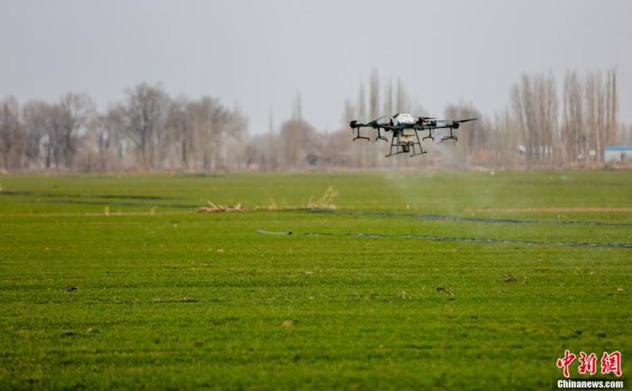 資料圖:農民用無人機噴灑農藥。 陶維明 攝