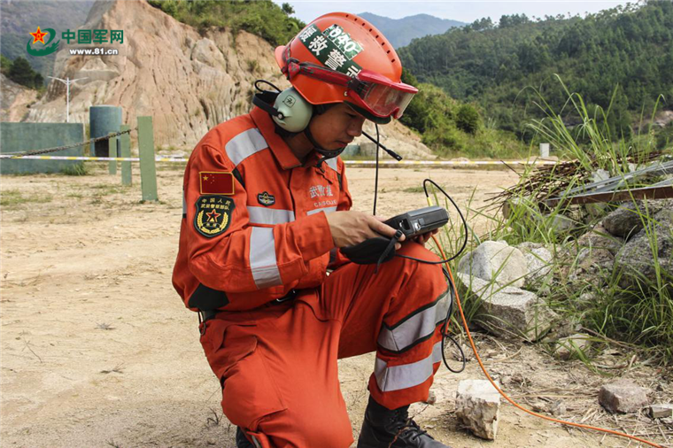 利用生命探測儀搜索“受困群眾”。阮一凡攝