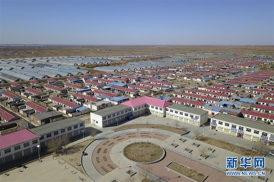 這是群眾易地扶貧搬遷入住的甘肅省古浪縣黃花灘生態(tài)移民區(qū)感恩新村(3月10日攝,無人機照片)。 新華社記者 范培珅 攝