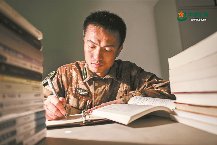 “政治工作干部也是戰(zhàn)斗員,心中要時刻裝著打仗。”繆中的桌上常放著軍事理論書籍。這樣的習(xí)慣,從他當(dāng)上指導(dǎo)員起就一直保持著。