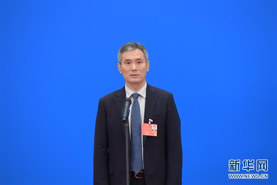 5月22日,第十三屆全國(guó)人民代表大會(huì)第三次會(huì)議舉行首場(chǎng)“代表通道”采訪活動(dòng)。這是全國(guó)人大代表肖勝方通過(guò)網(wǎng)絡(luò)視頻方式接受采訪。 新華社記者 李賀 攝
