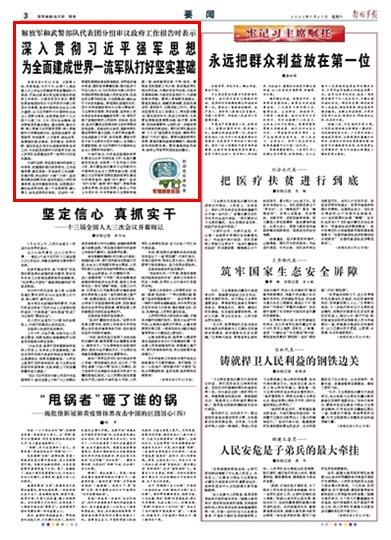 解放軍和武警部隊(duì)代表團(tuán)分組審議政府工作報(bào)告時(shí)表示
