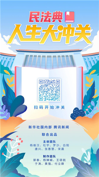 新華社國(guó)內(nèi)部和騰訊新聞獨(dú)家合作,重磅推出H5小游戲《民法典 | 人生大沖關(guān)》,根據(jù)民法典草案內(nèi)容,設(shè)計(jì)游戲場(chǎng)景,幫你真切體會(huì)這本“社會(huì)生活百科全書”將如何影響你的生活。