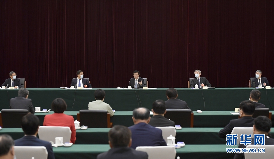 5月23日,中共中央政治局常委、中央書記處書記王滬寧看望出席全國政協(xié)十三屆三次會議的體育界、醫(yī)藥衛(wèi)生界委員并參加討論。 新華社記者 岳月偉 攝