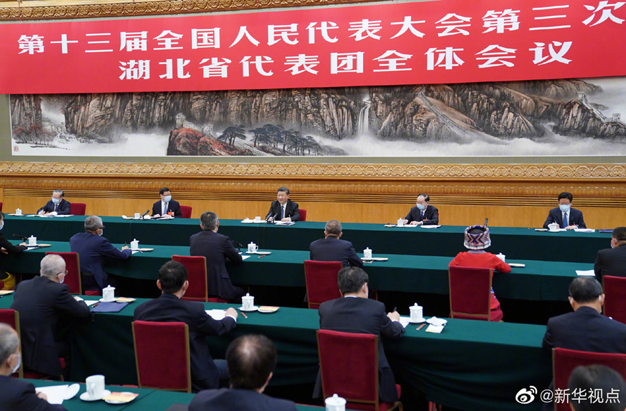 24日下午,中共中央總書記、國家主席、中央軍委主席習(xí)近平參加十三屆全國人大三次會議湖北代表團審議。