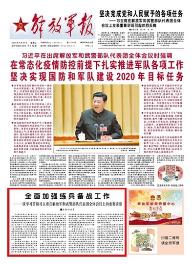 習(xí)主席在出席十三屆全國(guó)人大三次會(huì)議解放軍和武警部隊(duì)代表團(tuán)全體會(huì)議時(shí),站在時(shí)代發(fā)展和戰(zhàn)略全局高度,結(jié)合做好疫情防控工作,對(duì)軍隊(duì)全面加強(qiáng)練兵備戰(zhàn)工作、統(tǒng)籌抓好各項(xiàng)改革工作、做好“十三五”規(guī)劃落實(shí)和“十四五”規(guī)劃編制、鞏固軍政軍民團(tuán)結(jié)作出重大戰(zhàn)略部署。習(xí)主席的重要講話,具有很強(qiáng)的思想性、針對(duì)性、指導(dǎo)性,為在常態(tài)化疫情防控前提下扎實(shí)推進(jìn)軍隊(duì)各項(xiàng)工作,堅(jiān)決實(shí)現(xiàn)國(guó)防和軍隊(duì)建設(shè)2020年目標(biāo)任務(wù)指明了前進(jìn)方向,提供了根本遵循。