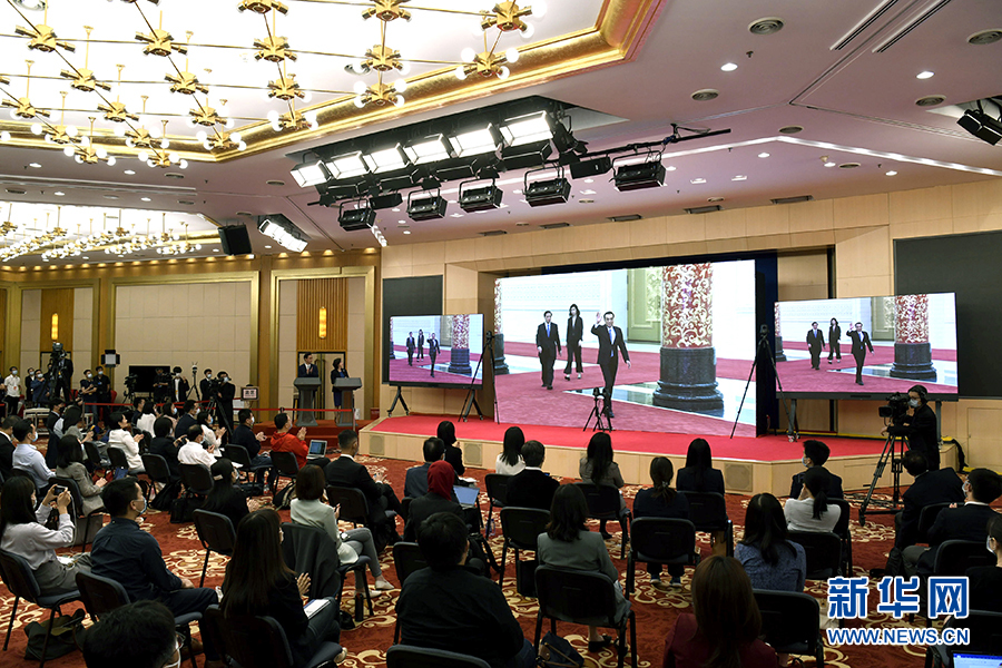 5月28日,國(guó)務(wù)院總理李克強(qiáng)在北京人民大會(huì)堂出席記者會(huì)并回答中外記者提問。這是記者在梅地亞中心多功能廳采訪。 新華社記者 金良快 攝