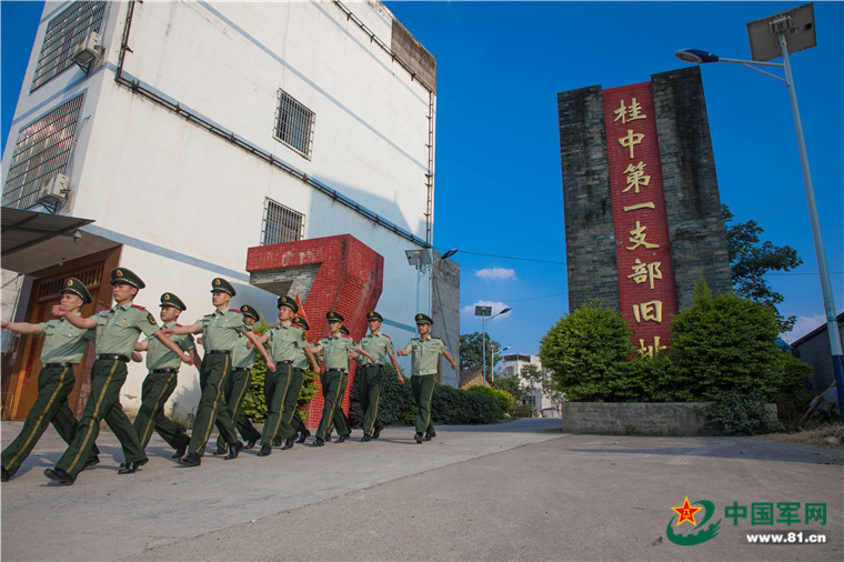其實,像這樣的現地教育課,這個中隊每年都會組織官兵開展,可是這次走進“桂中第一支部”,不一樣的是,中隊戰(zhàn)士梅建國當起了講解員。