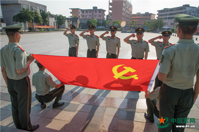 官兵們面向黨旗宣誓。果志遠 攝