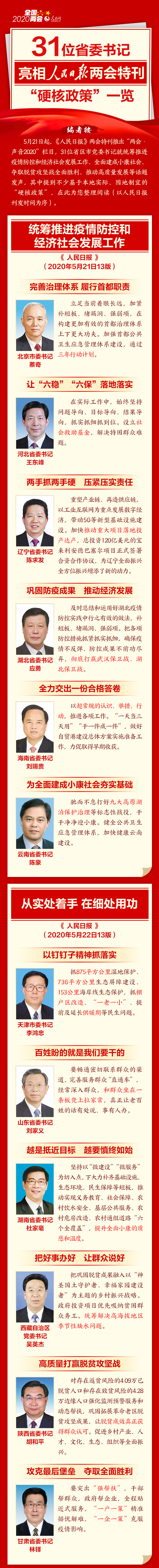 31位省委書記亮相人民日報兩會特刊“硬核政策”一覽