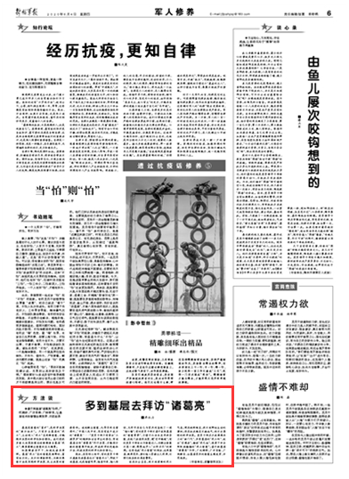 善于拜基層“諸葛亮”為師,廣泛調(diào)研、廣開言路、廣納群言,讓基層官兵的智慧生根發(fā)芽、開花結(jié)果