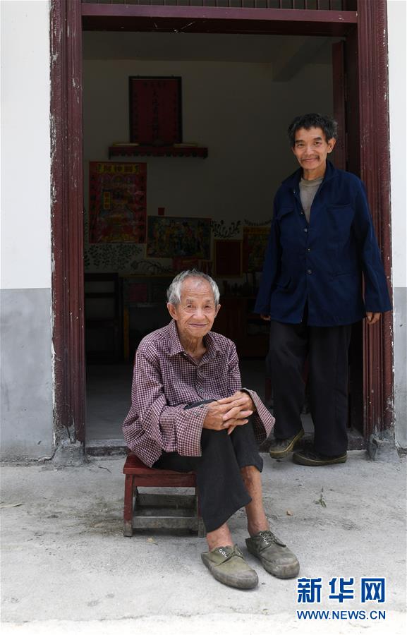 在廣西環(huán)江毛南族自治縣下南鄉(xiāng)下塘村上眉屯,搬遷戶譚廣田(右)和父親譚運(yùn)日在家門口(5月23日攝)。 新華社記者 陸波岸 攝