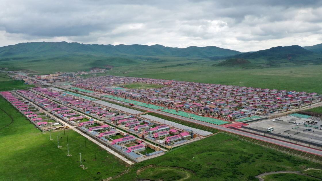 這是6月20日拍攝的甘南藏族自治州碌曲縣尕海鎮(zhèn)尕秀村村貌(無(wú)人機(jī)照片)。新華社記者 陳斌 攝