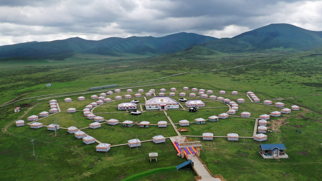 這是6月20日拍攝的甘南藏族自治州碌曲縣尕海鎮(zhèn)尕秀村帳篷城景區(qū)(無(wú)人機(jī)照片)。新華社記者 陳斌 攝