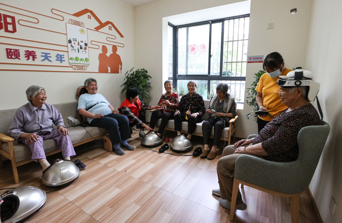 永聯(lián)村老年公寓的老人正在做理療(6月19日攝)。新華社記者楊磊攝