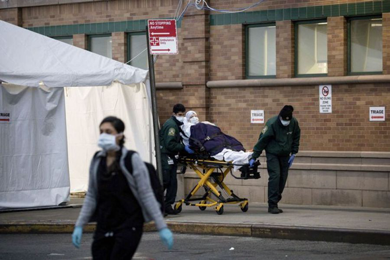 醫(yī)護(hù)人員將病人送往美國(guó)紐約布魯克林一家醫(yī)院的急診室。新華社發(fā)(郭克 攝)