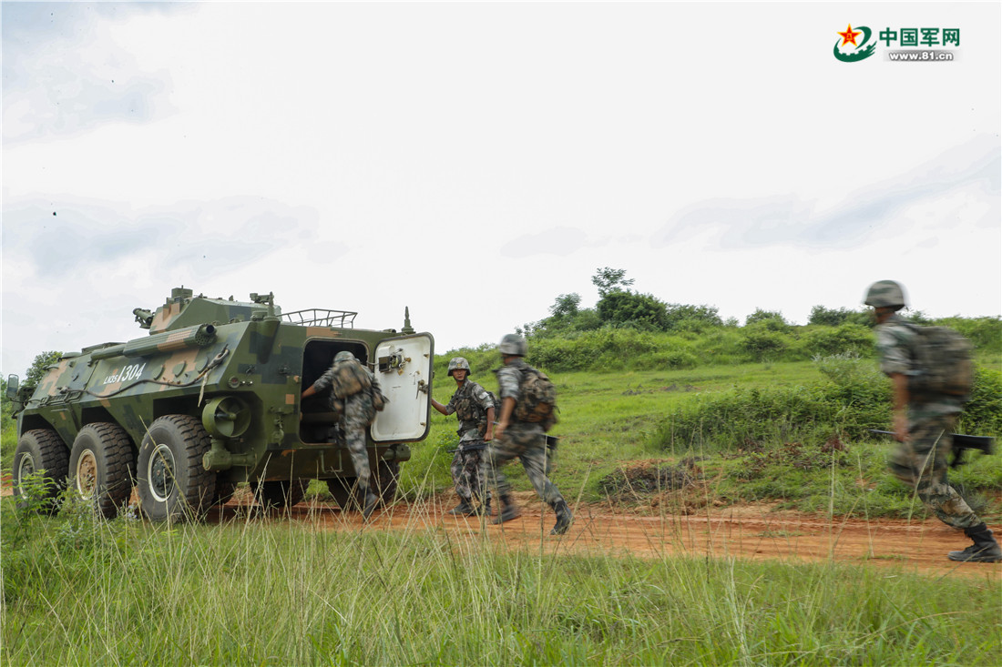 班戰(zhàn)術(shù)綜合演練中,裝步班正在進(jìn)行行進(jìn)間登車。黃遠(yuǎn)利 攝