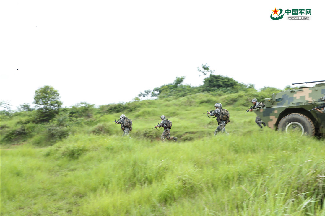 班戰(zhàn)術綜合演練中,裝步班正在協(xié)同開進。黃遠利 攝