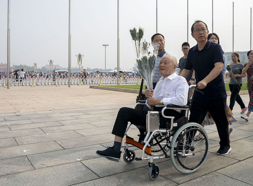 張富清參觀天安門廣場(chǎng)。新華社記者 程敏 攝