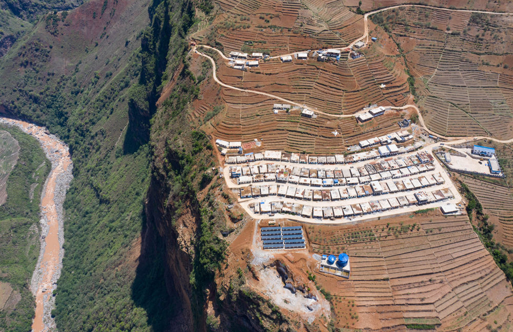 這是西溪河峽谷邊的四川省金陽縣老寨子村集中安置點(diǎn)(6月4日攝,無人機(jī)照片)