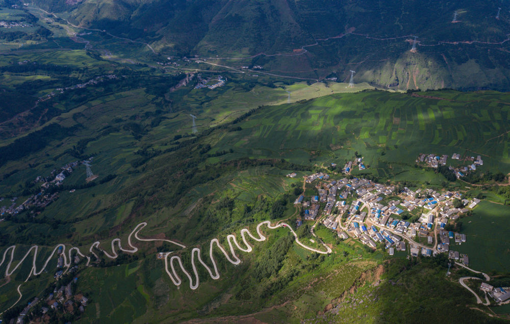 這是6月28日無人機(jī)拍攝的四川省布拖縣美撒鄉(xiāng)莫此村一角。新華社記者 江宏景 攝