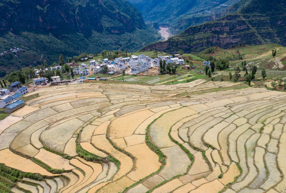6月24日,金沙江邊的四川省布拖縣拉果鄉(xiāng)偉木村安全住房依山而建錯落有致(無人機(jī)照片)。