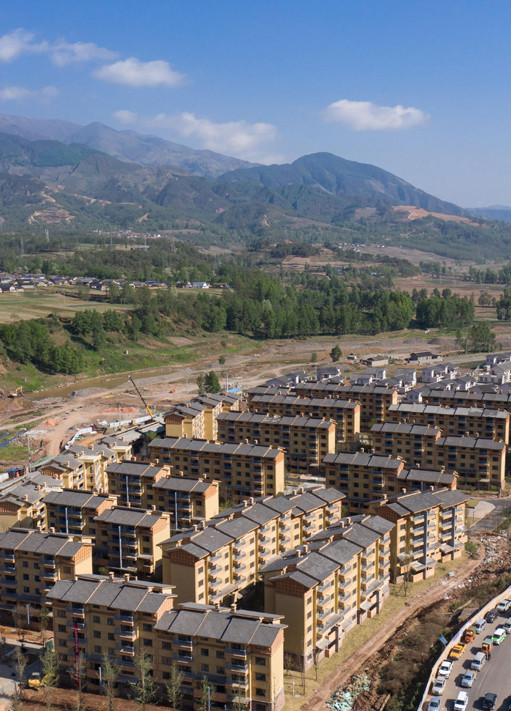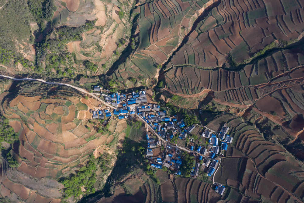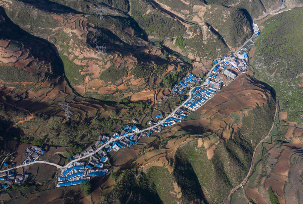 俯瞰群山中的四川省布拖縣烏科鄉(xiāng)洛呷村集中安置點(diǎn)(5月17日攝,無人機(jī)照片)。
