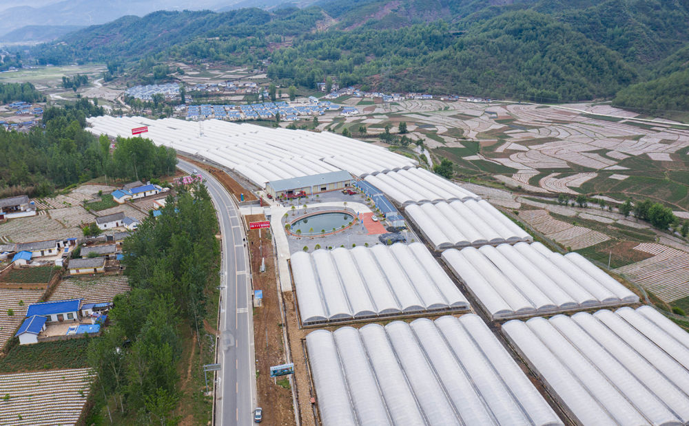 俯瞰四川省布拖縣拉達(dá)鄉(xiāng)特爾村的集中安置點(diǎn)和農(nóng)業(yè)示范園區(qū)(5月18日攝,無人機(jī)照片)。