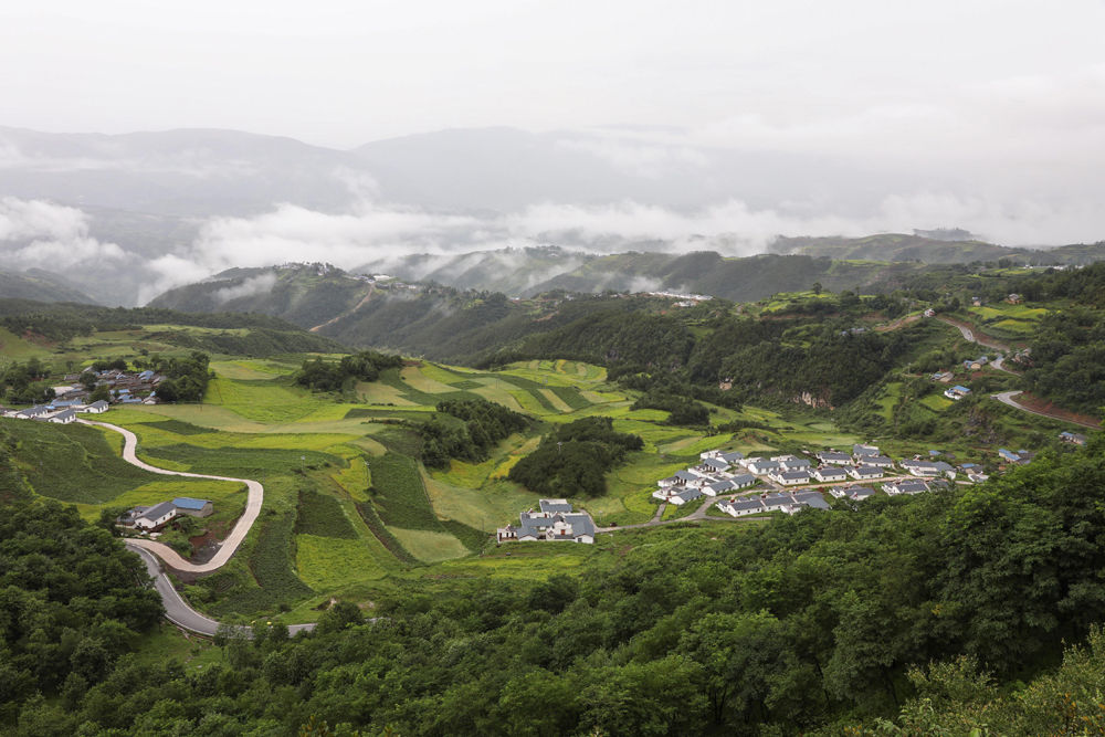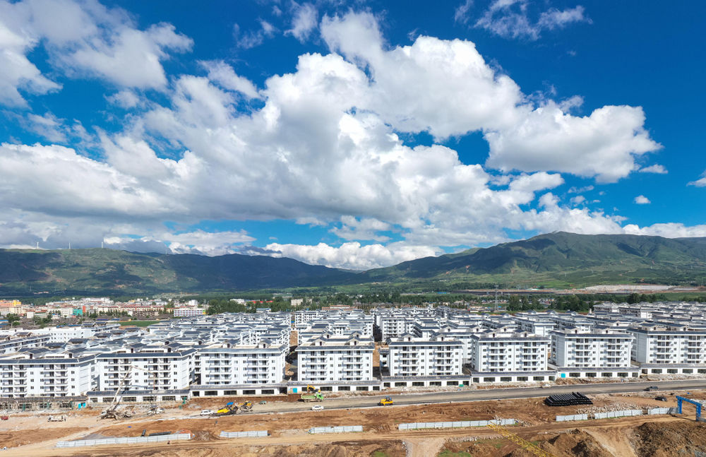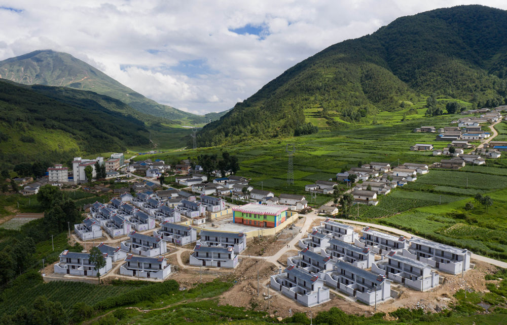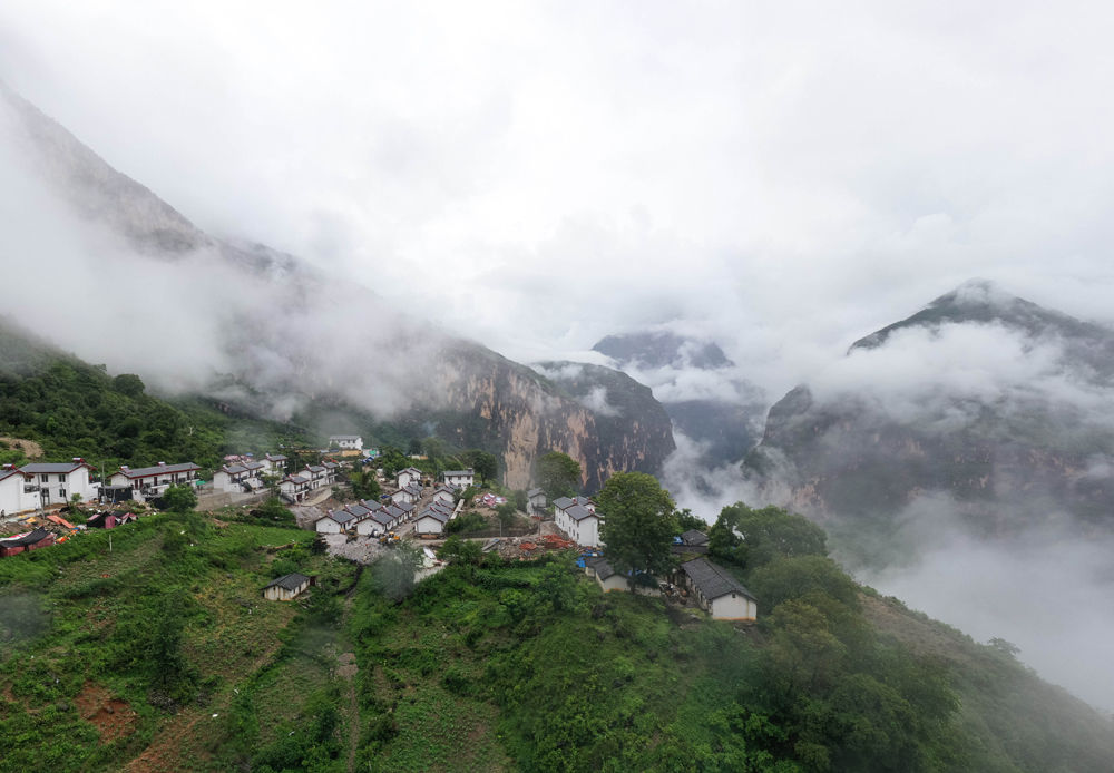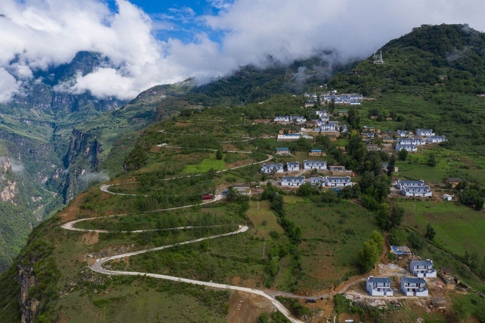 遠(yuǎn)眺雨后的四川省布拖縣阿布洛哈村易地扶貧搬遷集中安置點(diǎn)(6月30日攝,無人機(jī)照片)。