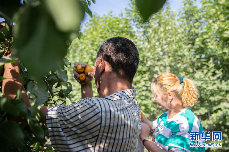 英吉沙縣當?shù)毓r(nóng)正在采收“英吉沙杏” 新華網(wǎng) 杲均豐 攝