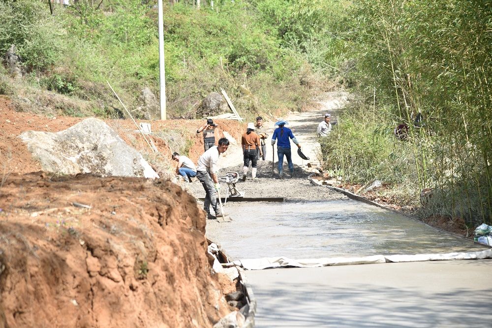 根據(jù)督導(dǎo)反饋,威寧縣龍場鎮(zhèn)尖山村正組織施工隊硬化通組路。新華社記者駱飛 攝
